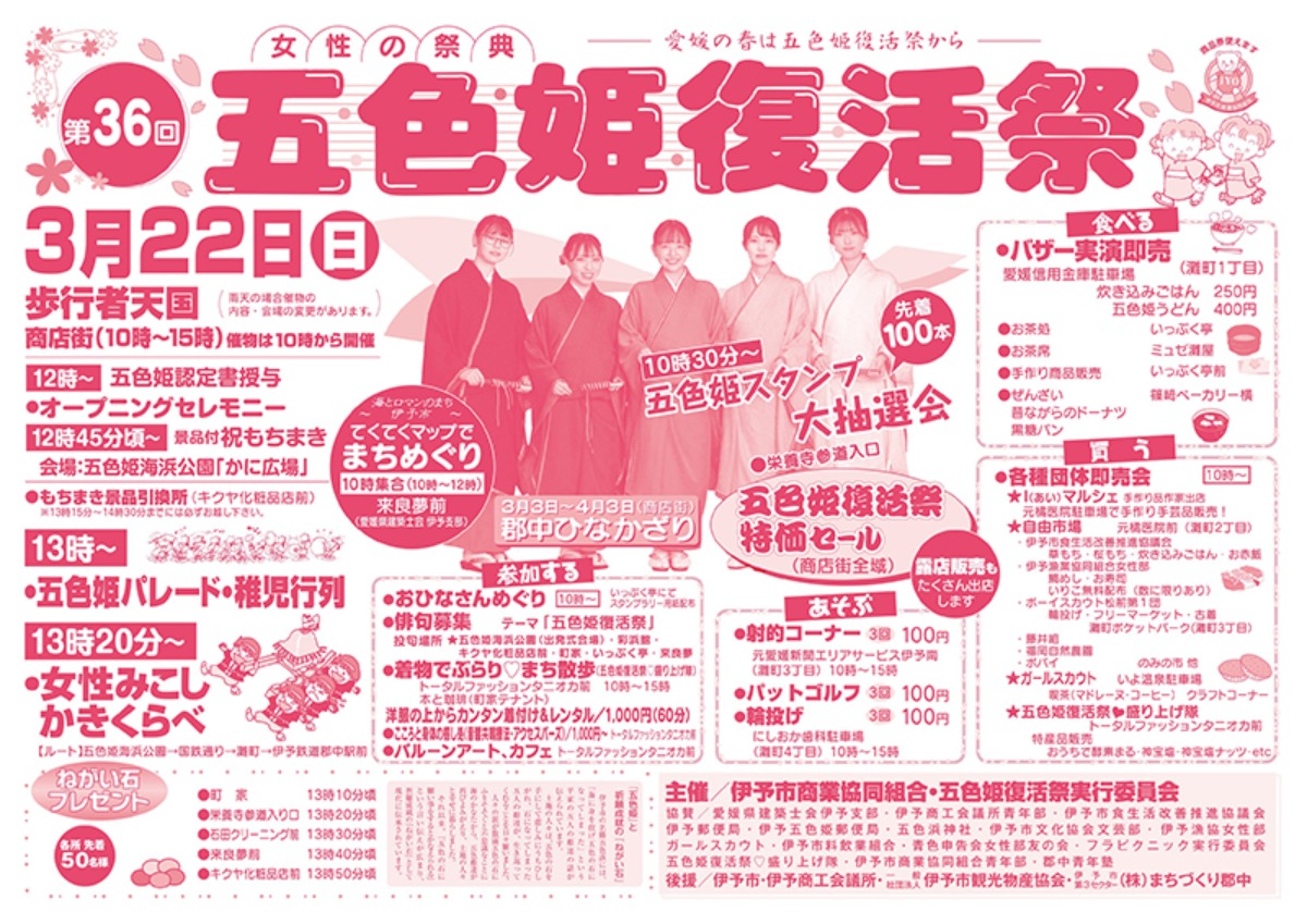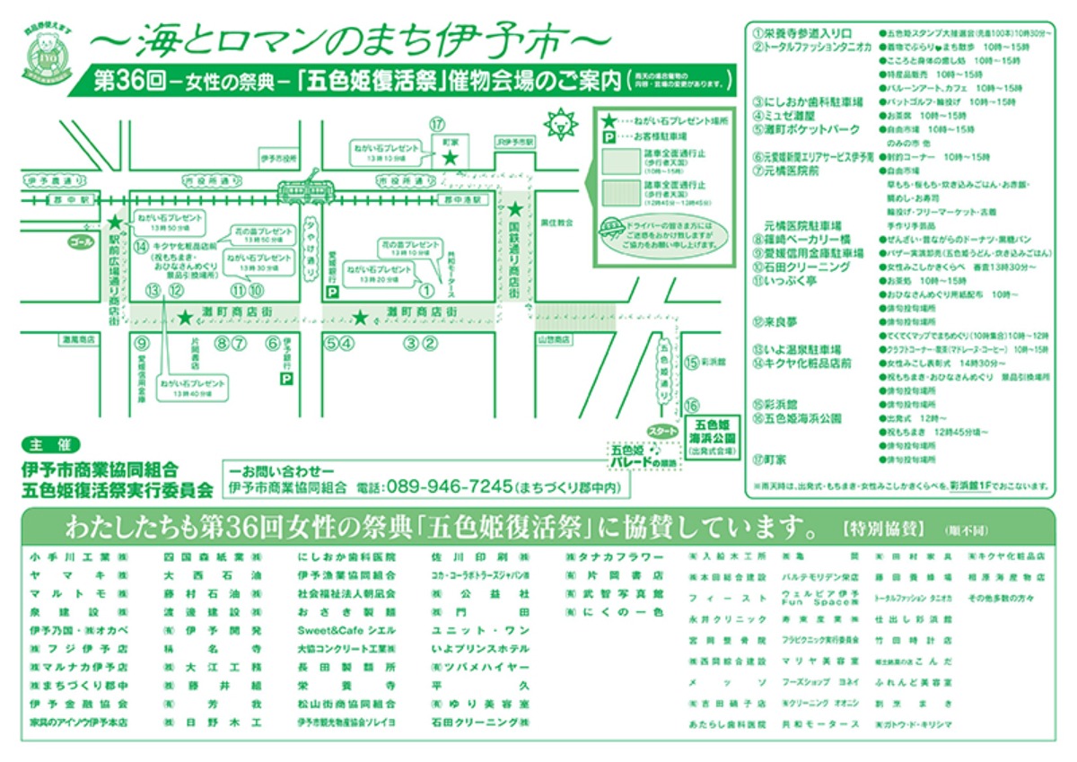 お問い合わせ/伊予市商業協同組合 五色姫復活祭実行委員会 089-946-7245