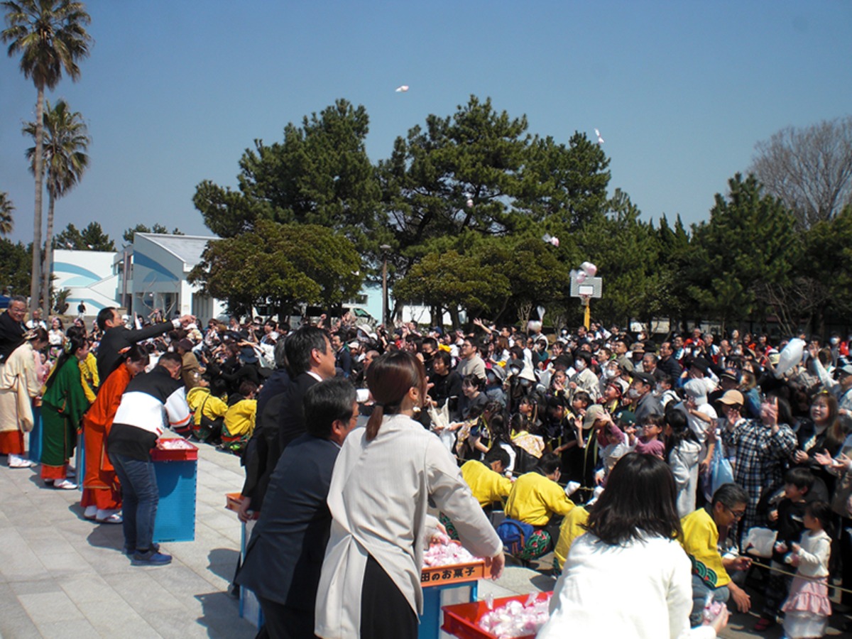 オープニングセレモニーの後に行われる「祝もちまき」はぜひとも参加しておきたいところ。
