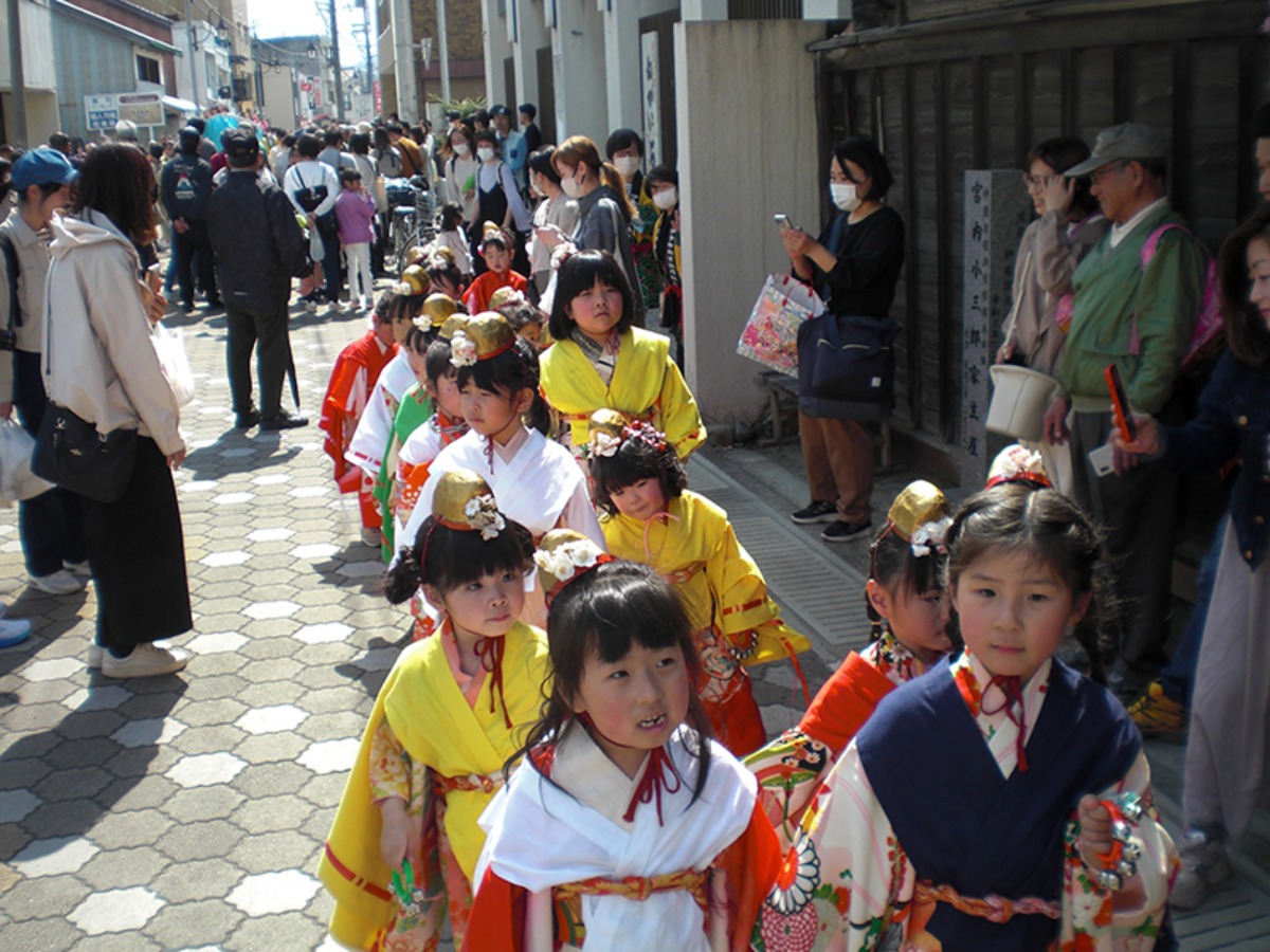 色鮮やかな衣装をまとった五色の姫や、可愛らしい子どもたちが練り歩く姿は、春の街並みに温かみを添えてくれることでしょう。