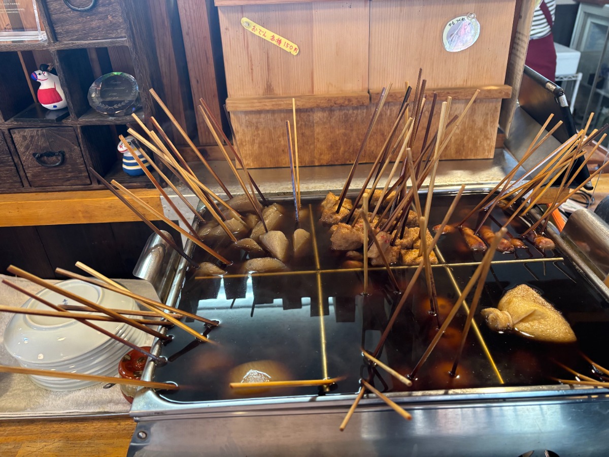 入口近くに設置されたおでん鍋から、食べたいものを自分で取るスタイルです。