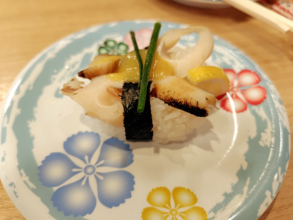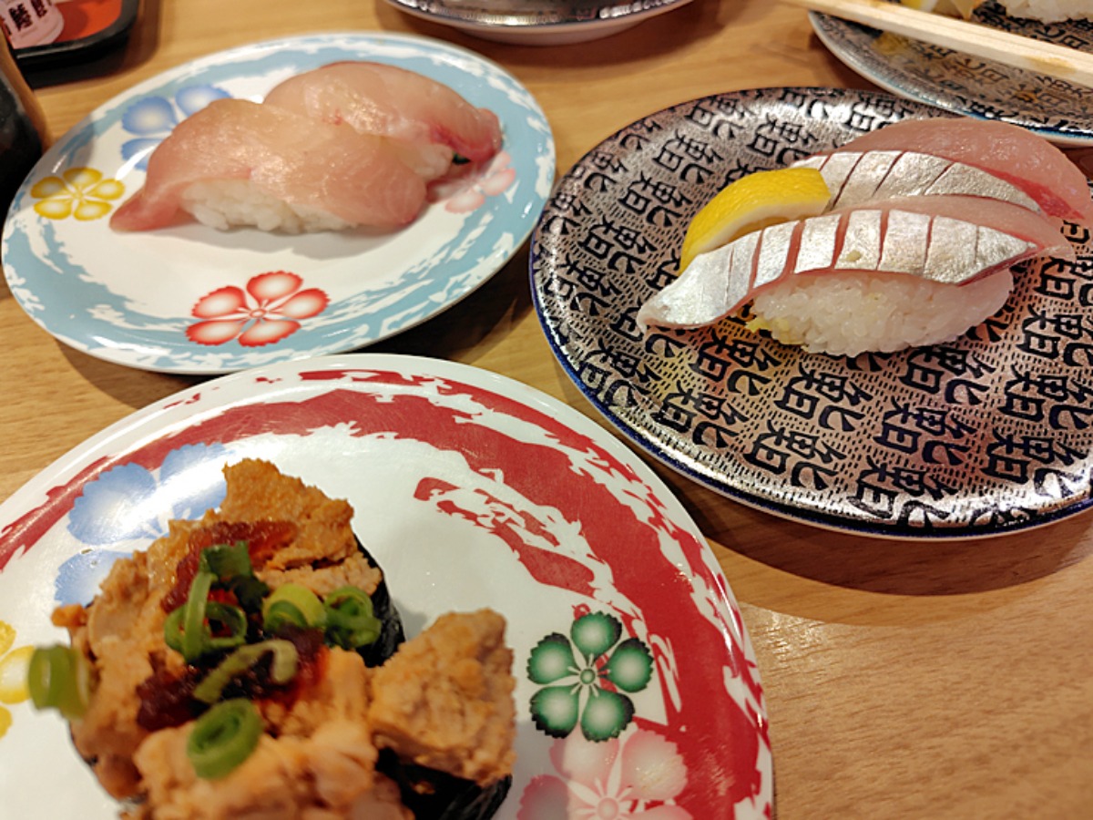 レーンには「かすみ貝」や「芽葱」「しょうさいふぐ」など珍しいネタも回っていて、楽しくてお腹いっぱいのお寿司時間を過ごすことができました。