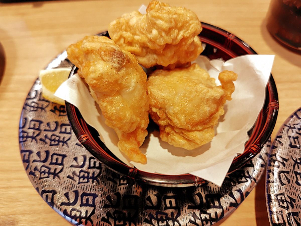 ふぐの天ぷら。衣がフワフワ、サクサク、もちろん揚げたて。