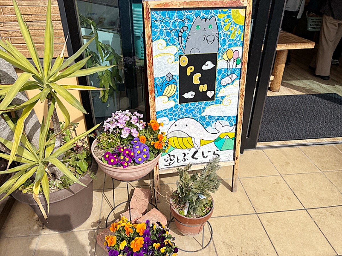 「空とぶくじら」というお店の名前通り、優しいタッチのくじらが空を飛ぶ様子がこの穏やかな四国中央市の町にぴったりだなと思いました。