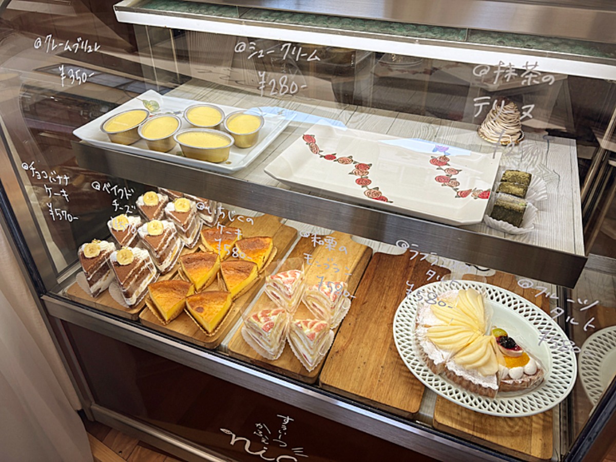 店内に入るとまず飛び込んでくるのは、スイーツが並んだショーケース。