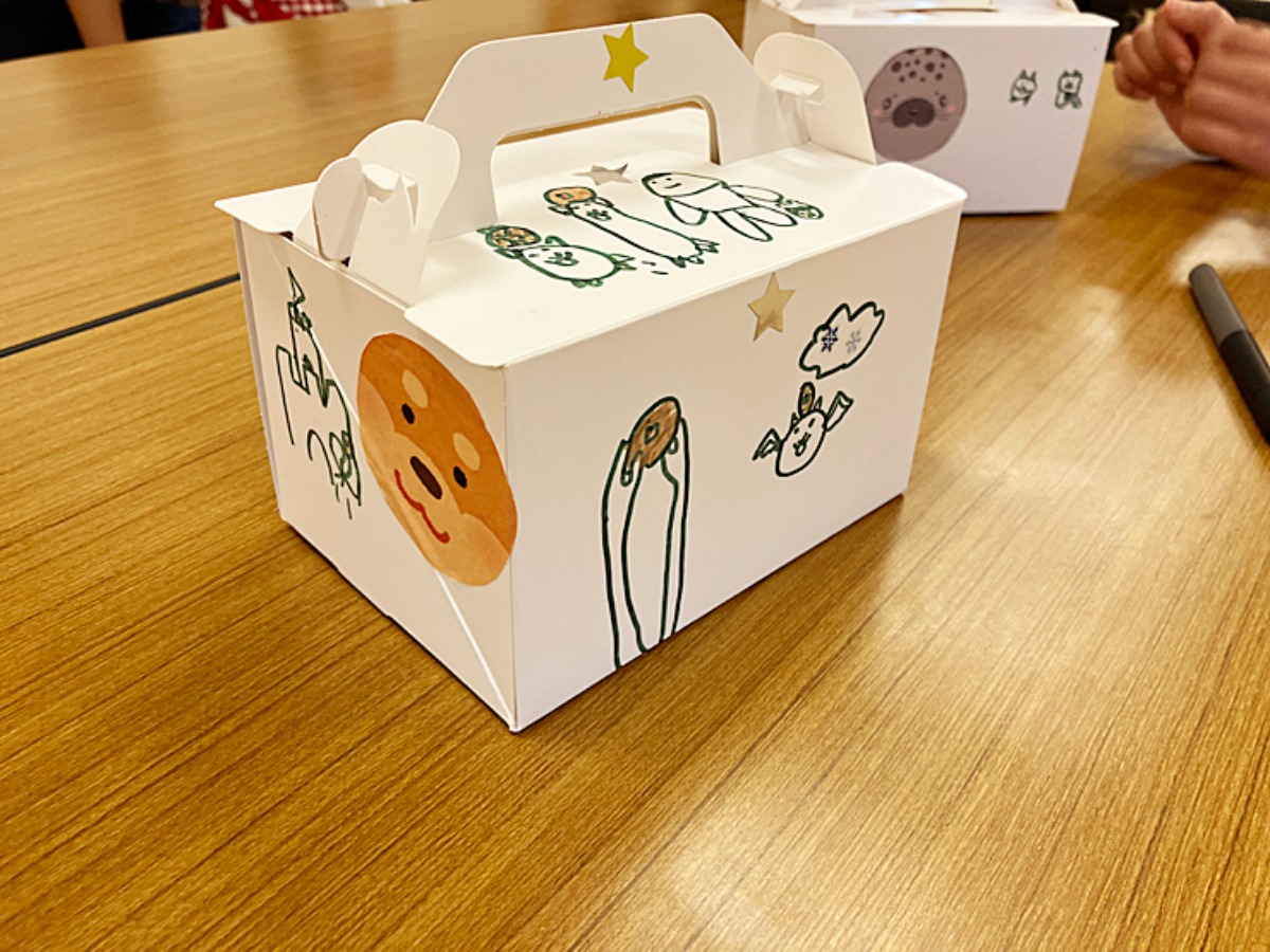 持ち帰り用の箱も可愛くデコレーション♪子どもたちの想像力は本当に豊かです。