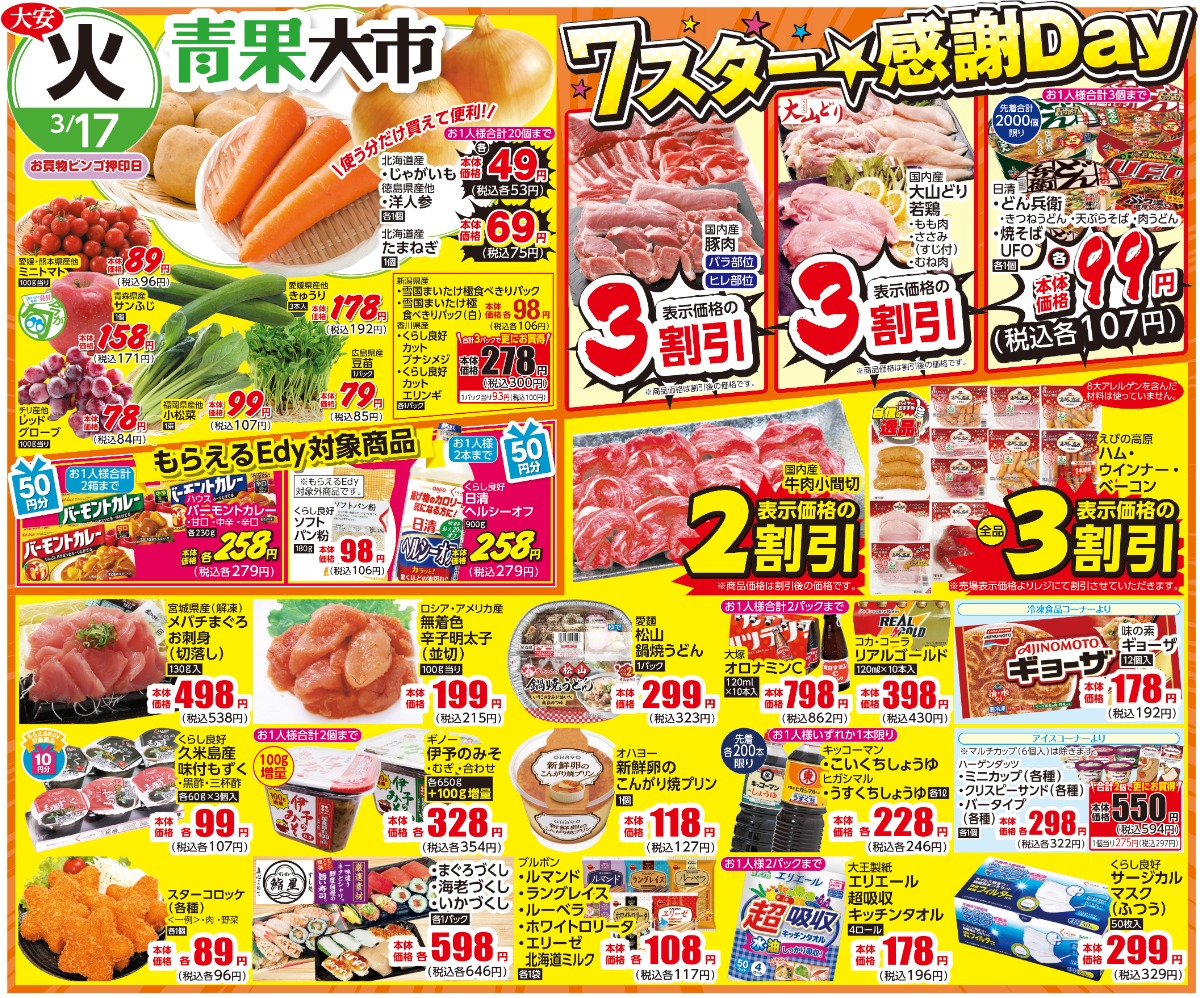 【セブンスター│チラシ】3/16(月)~3/19(木)|お買い得商品をチェックしよう!