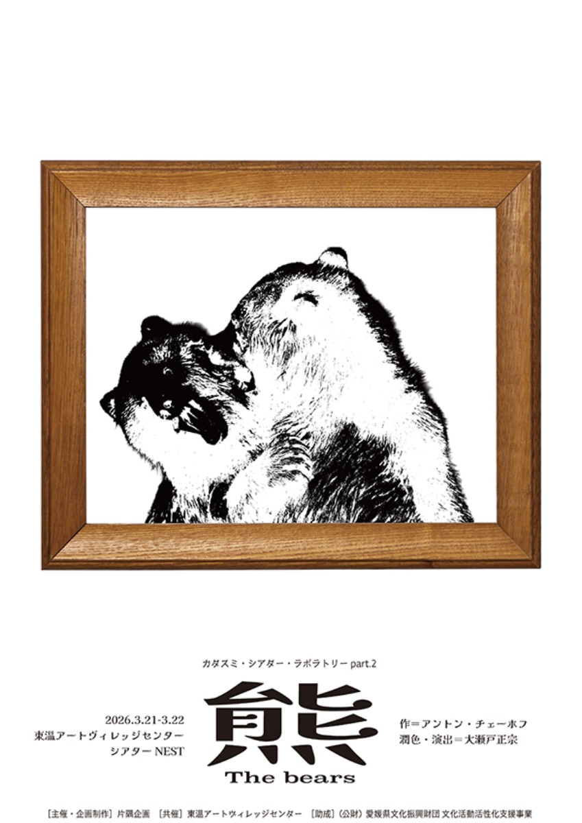 愛媛県東温市で上演されるカタスミ・シアター・ラボラトリーpart.2『熊』は、普段の生活ではなかなか出会えない感情のゆらぎや人間模様を、観客のすぐそばで描き出す特別な舞台!