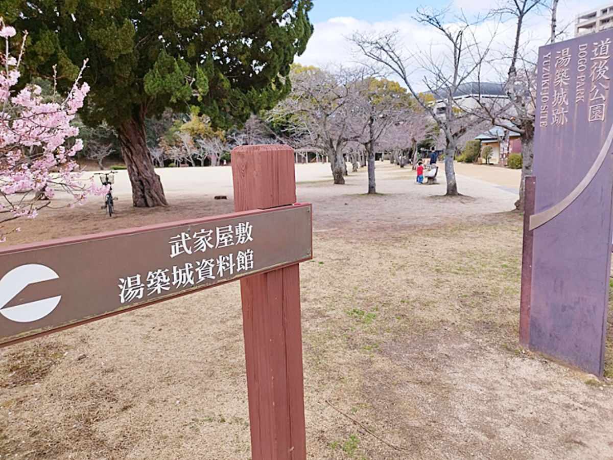 道後公園は湯築城の城跡でもあり、武家屋敷や土塀を復元されているほか、発掘調査で見つかった出土品などの展示も見られるそうです。