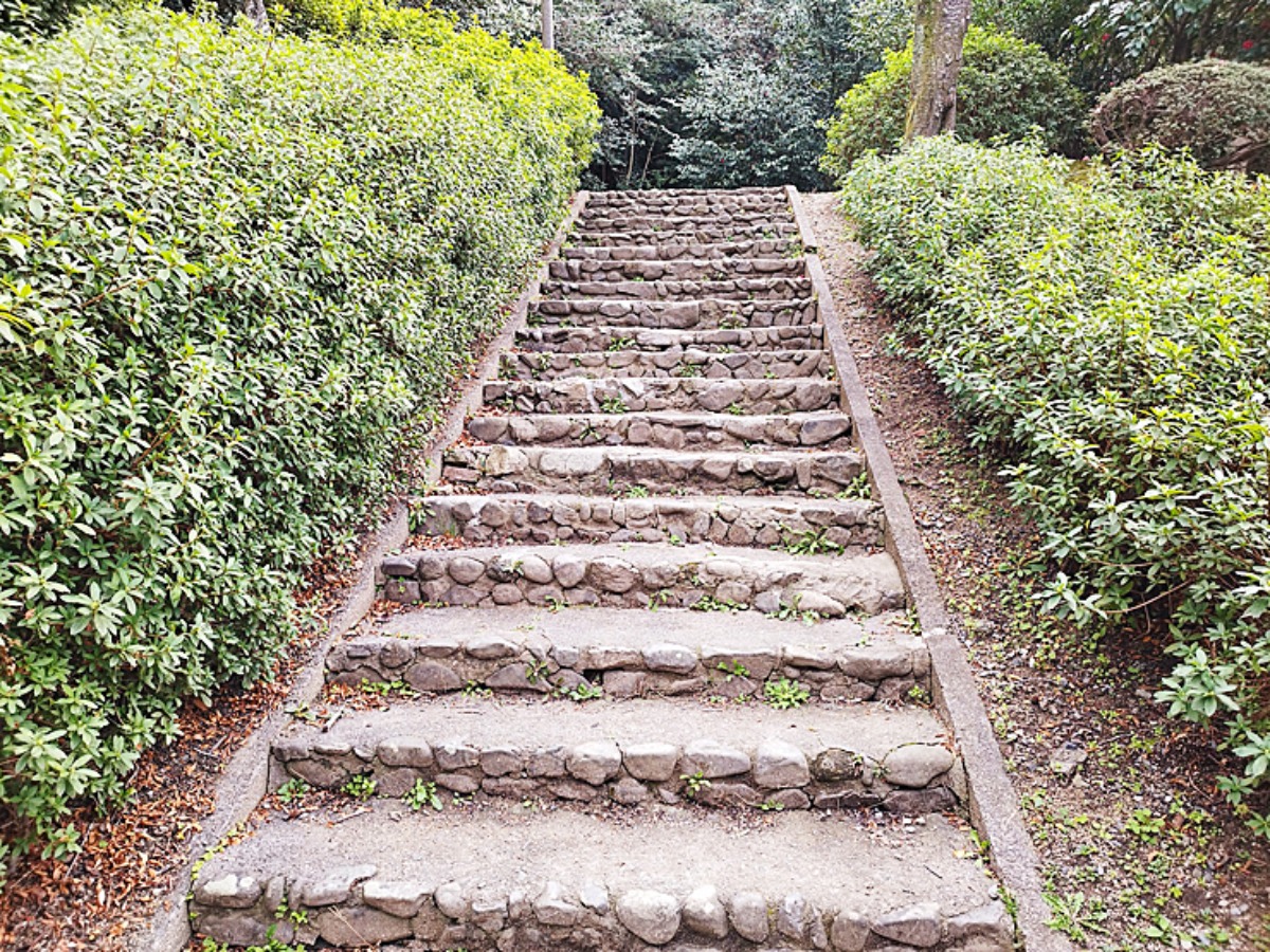 この長い石段を登った先に何かがありそうな予感。