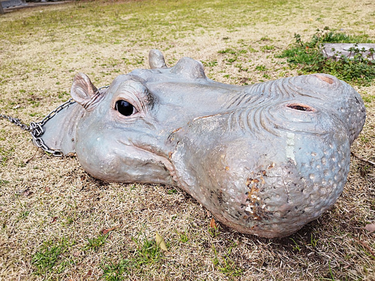 カバが地面に埋まっていてビックリ!遊び心溢れるアート作品の展示も楽しいですね。