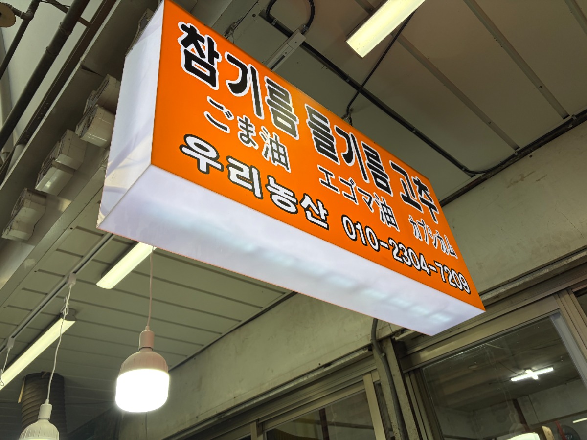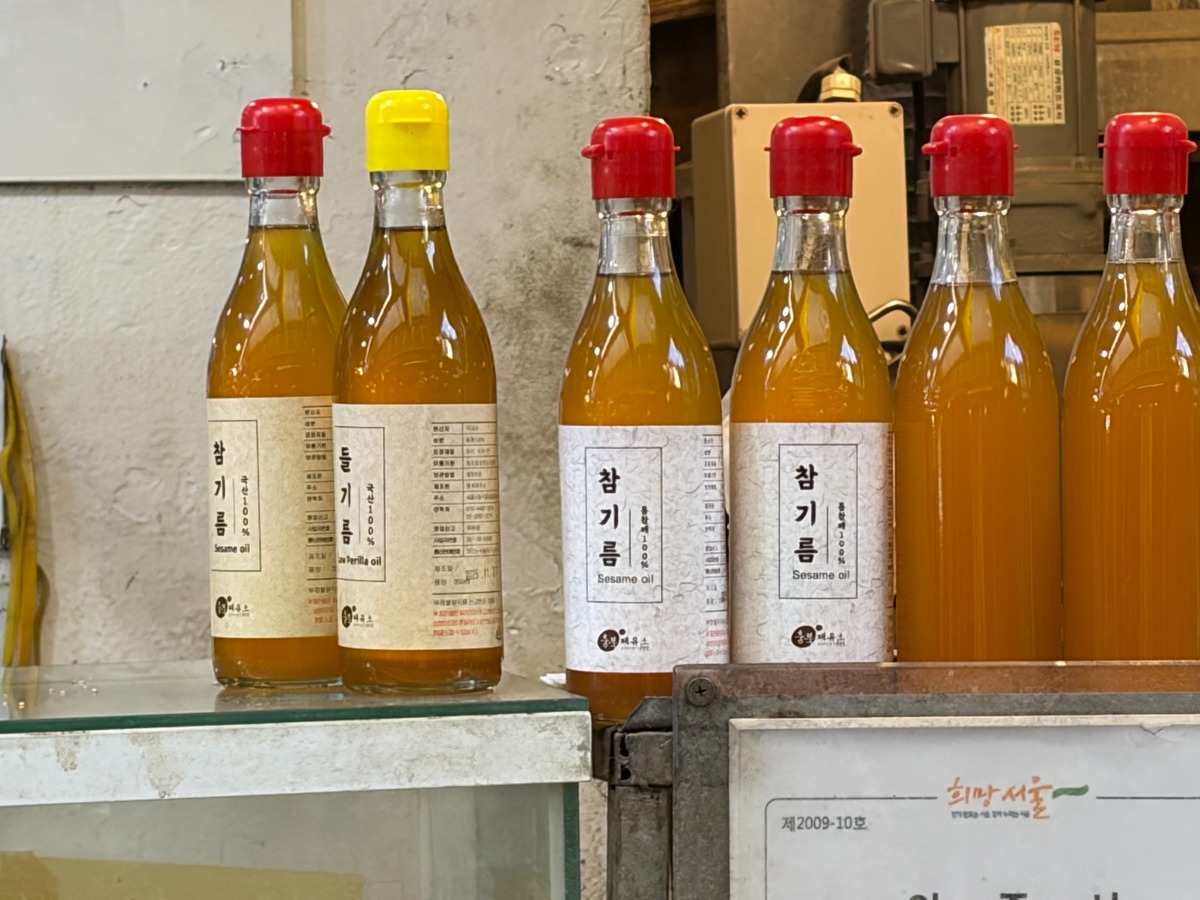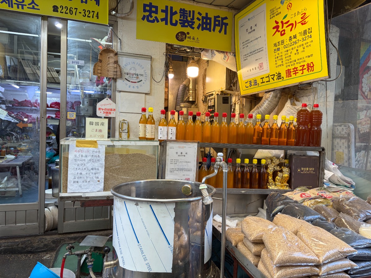 中部市場に店を構える、ゴマ油・エゴマ油の専門店「忠北製油所」。