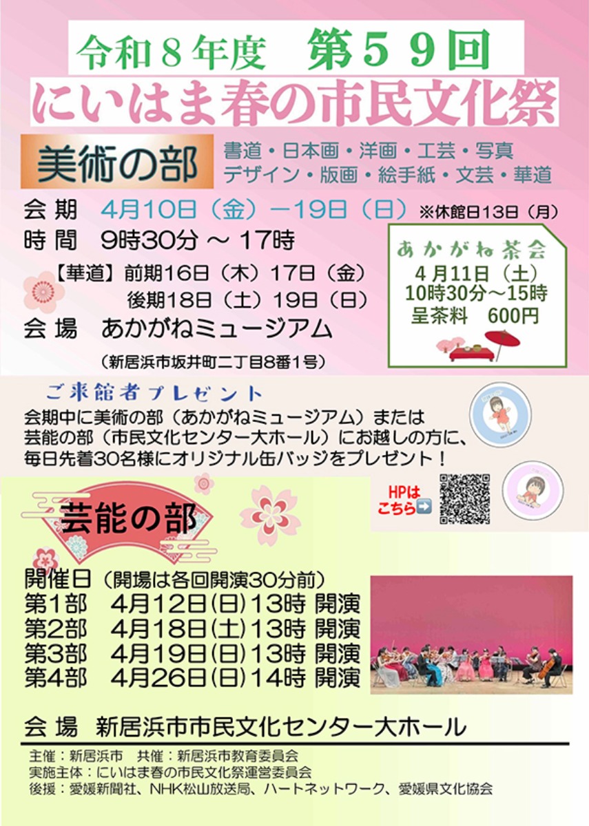 令和8年度 第59回 にいはま春の市民文化祭 美術の部の情報