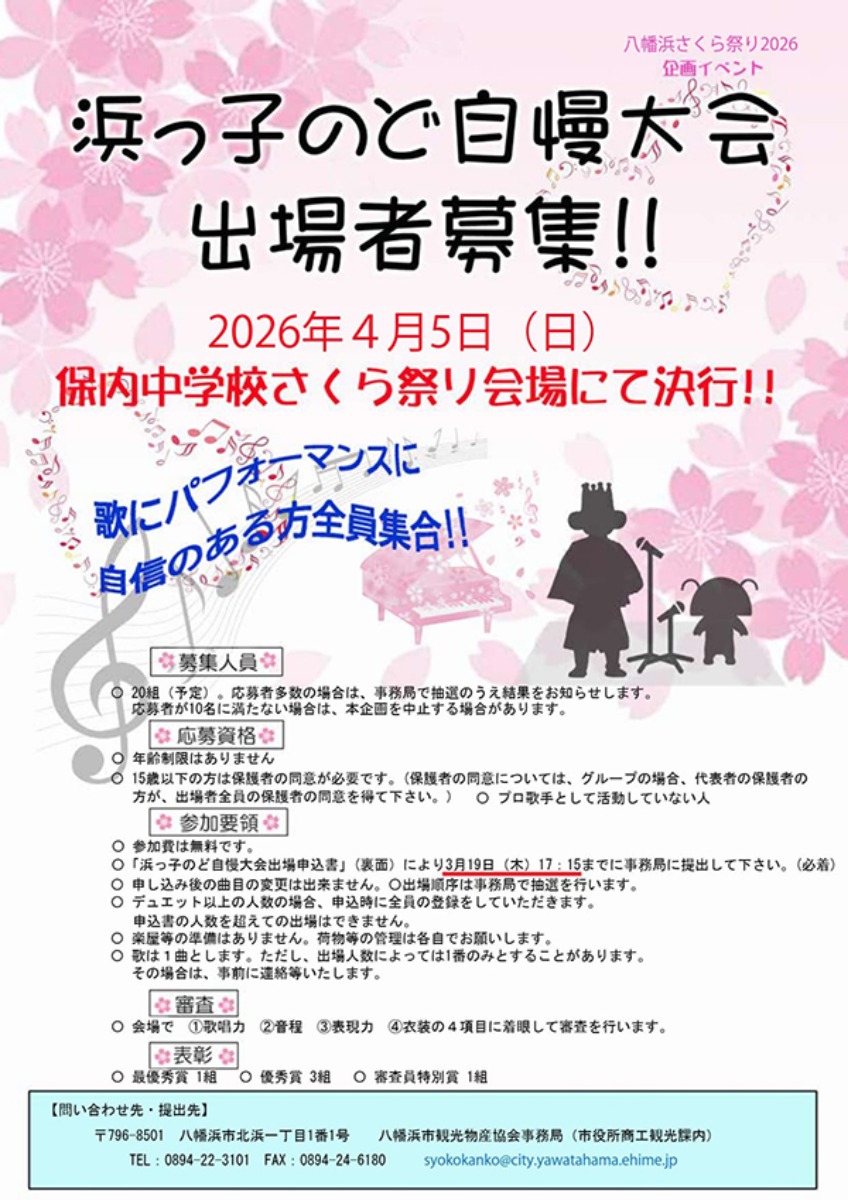 「さくら祭り2026」の最大の見どころは、10:20頃から開催される「浜っ子のど自慢大会」。