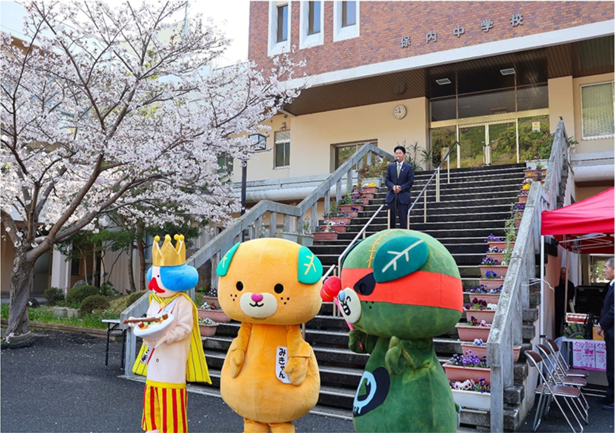 保内中学校は八幡浜市でも有数の桜の名所として知られ、イベント当日は見事な桜並木が会場を彩ります。