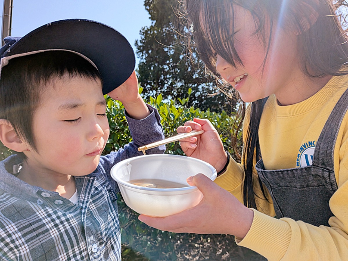 子どもたちは、牡蠣の旨みが染み出した温かいお汁が気に入ったようでした。