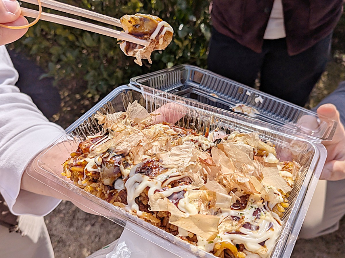 さらに椅子やテーブルもいっぱいで、ほぼ立ち食い状態でした。あたりには小さなシートを持参している方も多く、次回参加する時の参考になりそうです。