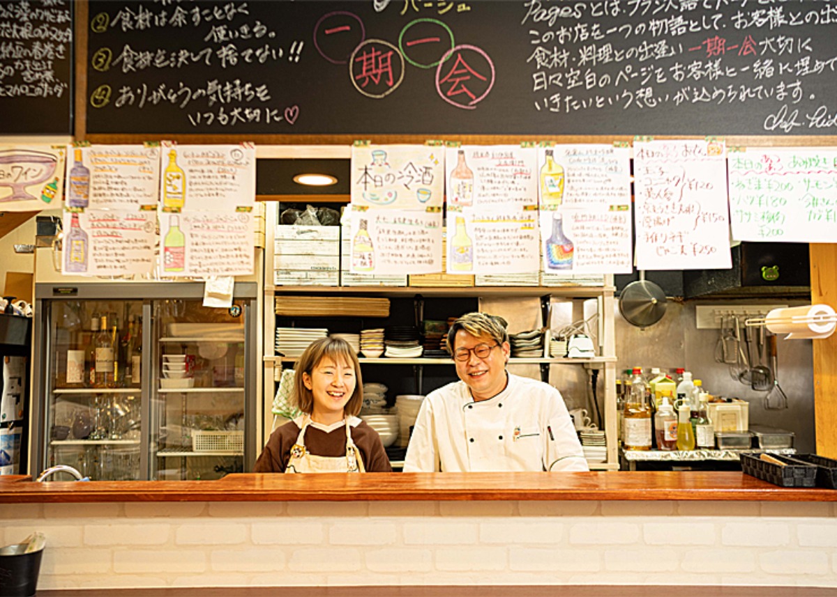 料理は自分の表現と語るシェフ。昨夏から奥さんが接客に加わり、絶妙コンビネーションで店を盛り立てる
