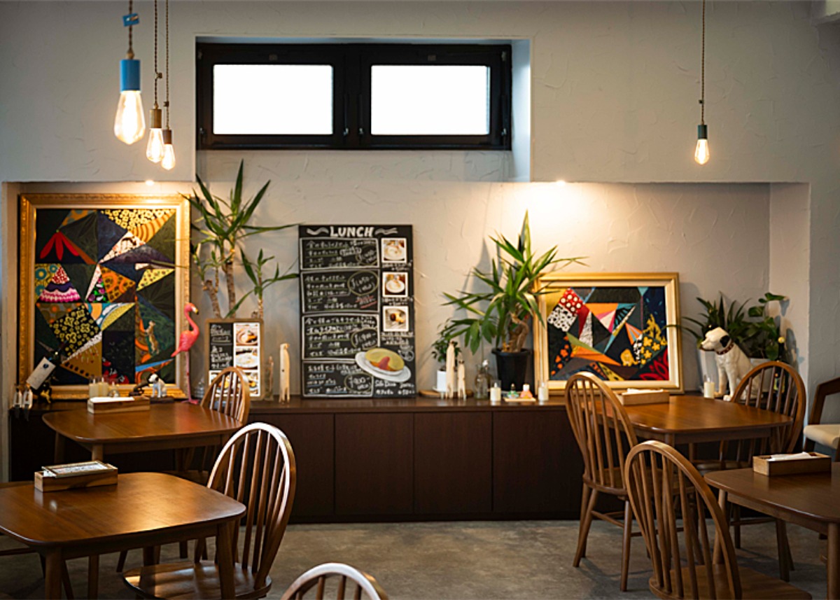 店内の壁には奥さんが描いた絵が飾られている。温かみのある店内で食事を楽しもう