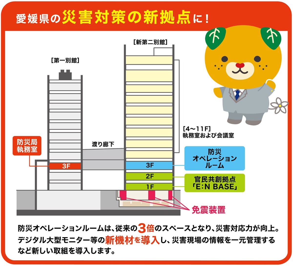 災害に強い愛媛県のシンボル庁舎!官民共創の新たな拠点もオープン