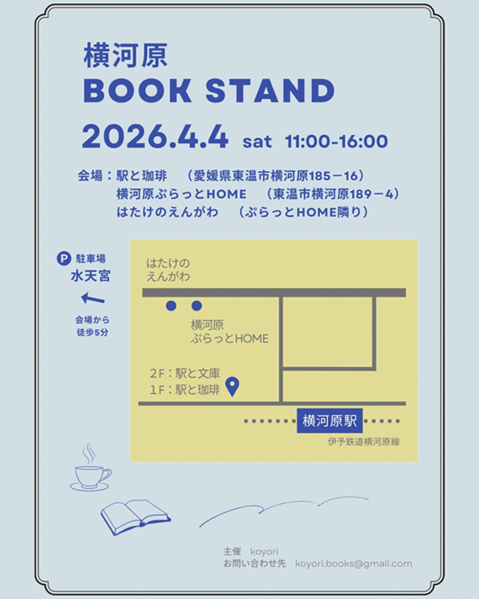 1日を通して新たな出会いや発見が待っているので、本が好きな方、本屋さんが好きな方だけでなく、興味はあるけど一歩踏み出せていない方も、2026年4月4日(土)は横河原に出かけてみてくださいね♪