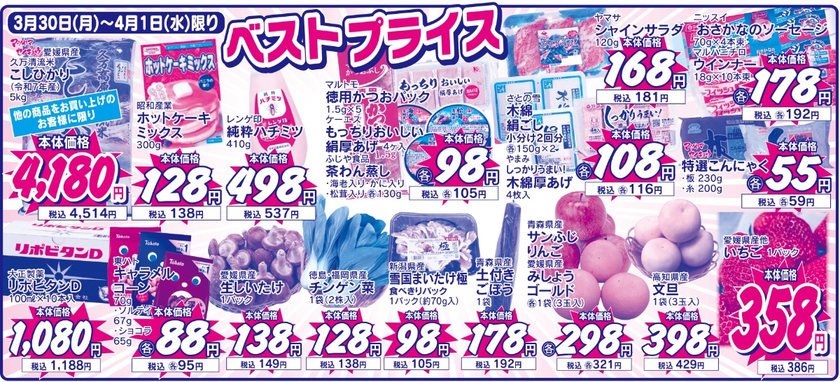 3/30(月)~4/1(水)ベストプライス