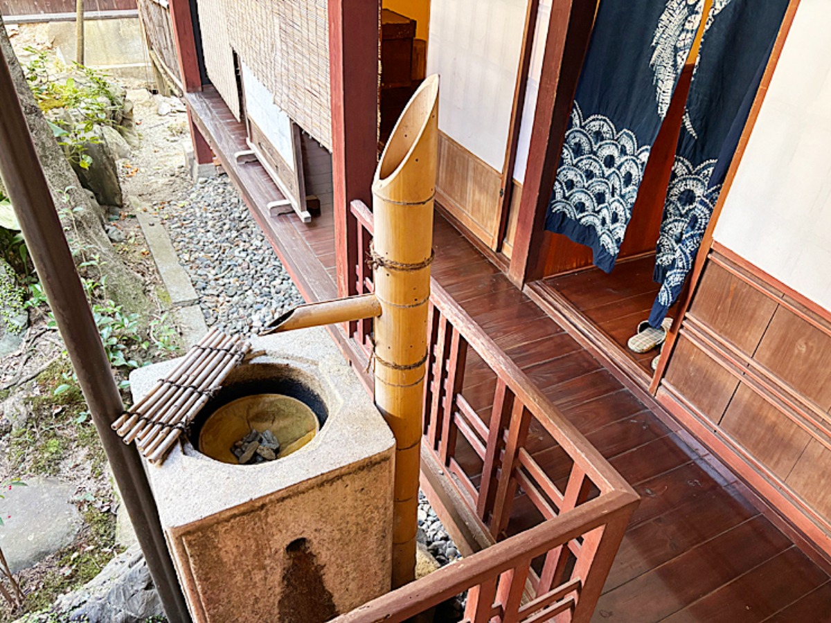 竹のししおどしがさりげなく置かれ、和の風情をゆったりと味わえます。