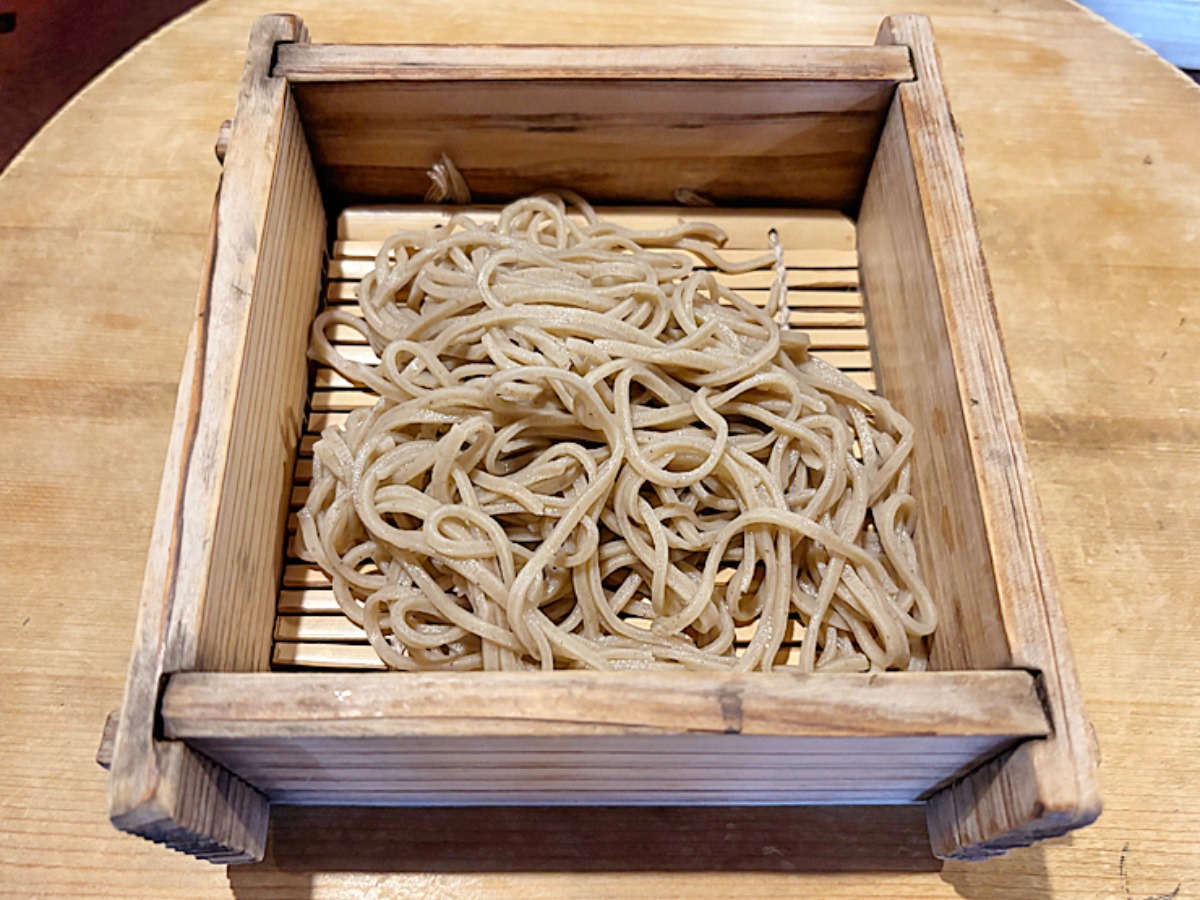 木の器に盛られたそばは風情があり、見た目からも食欲をそそります。コシのある麺はつるっとしたのどごしで、最後まで美味しく味わえますよ。