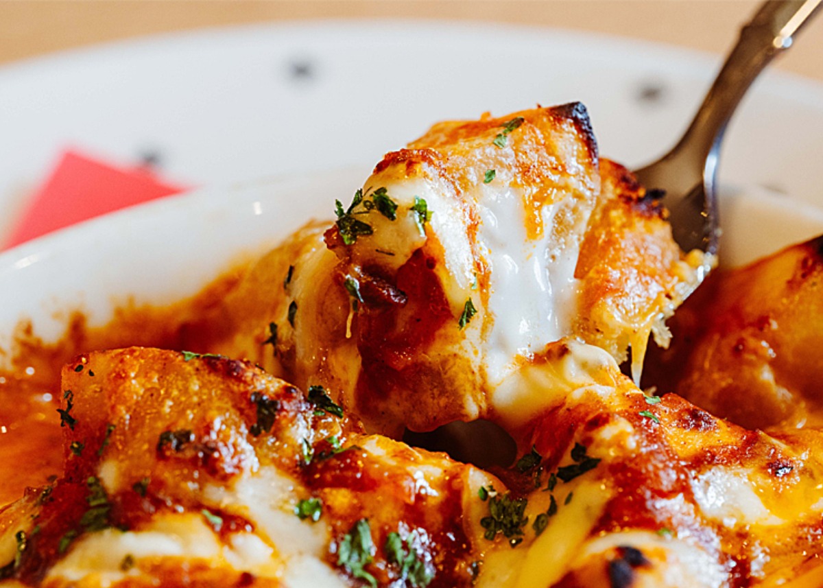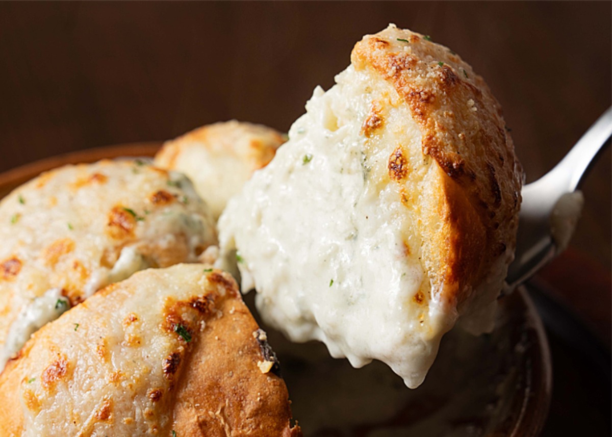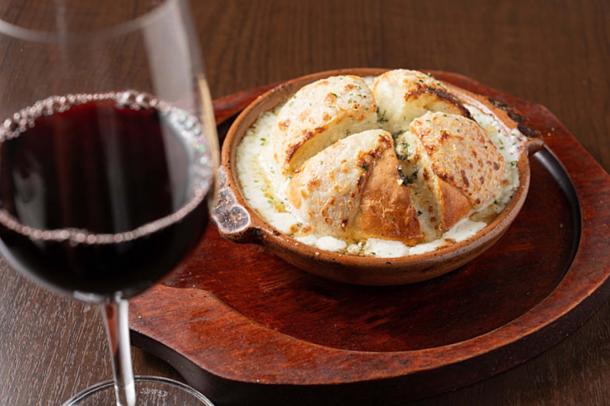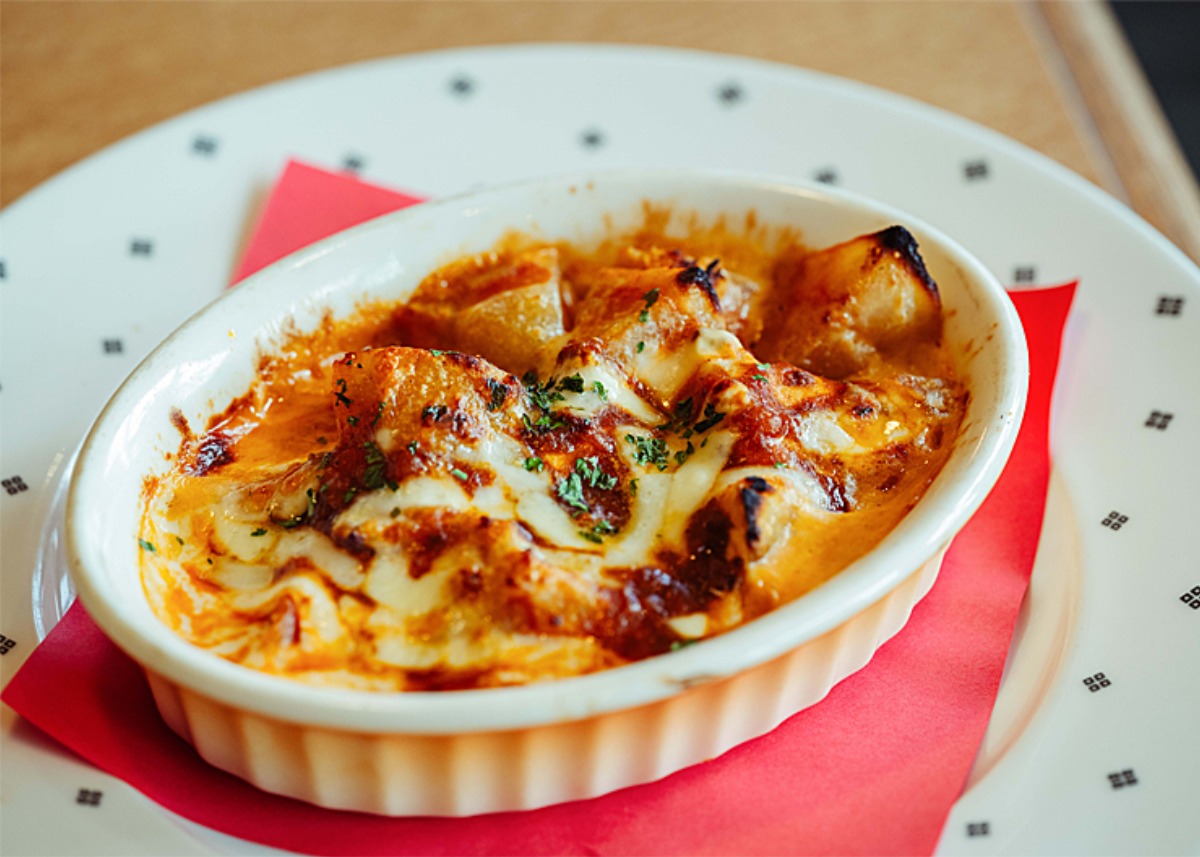 ディナータイムの人気アラカルト。ひと口サイズにカットした自家製パンが、ホワイトソースをたっぷり吸い込んだひと皿