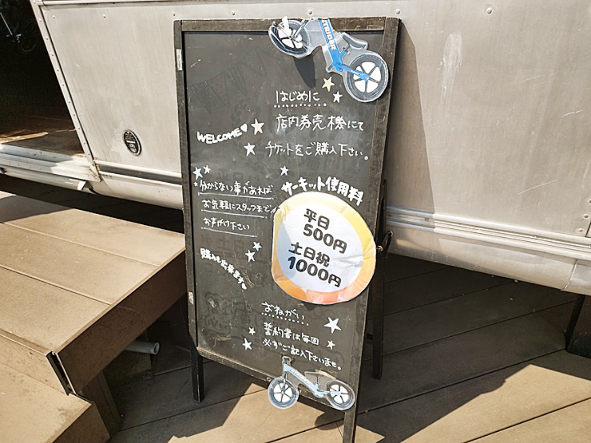 ストライダーのレンタル費用が500円、ヘルメットのレンタル料は100円です。