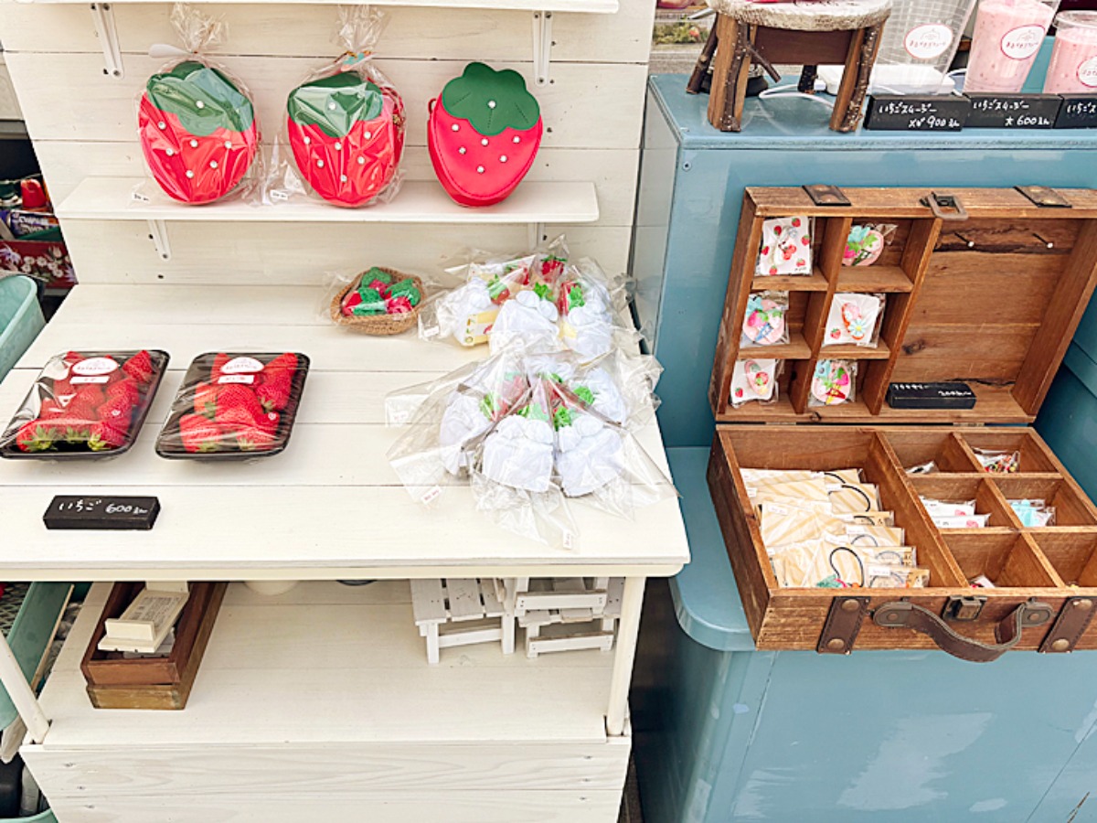 いちごの雑貨なども販売されていて、かわいらしい雰囲気とほのかに 薫る甘酸っぱい香りにワクワクが止まりません。