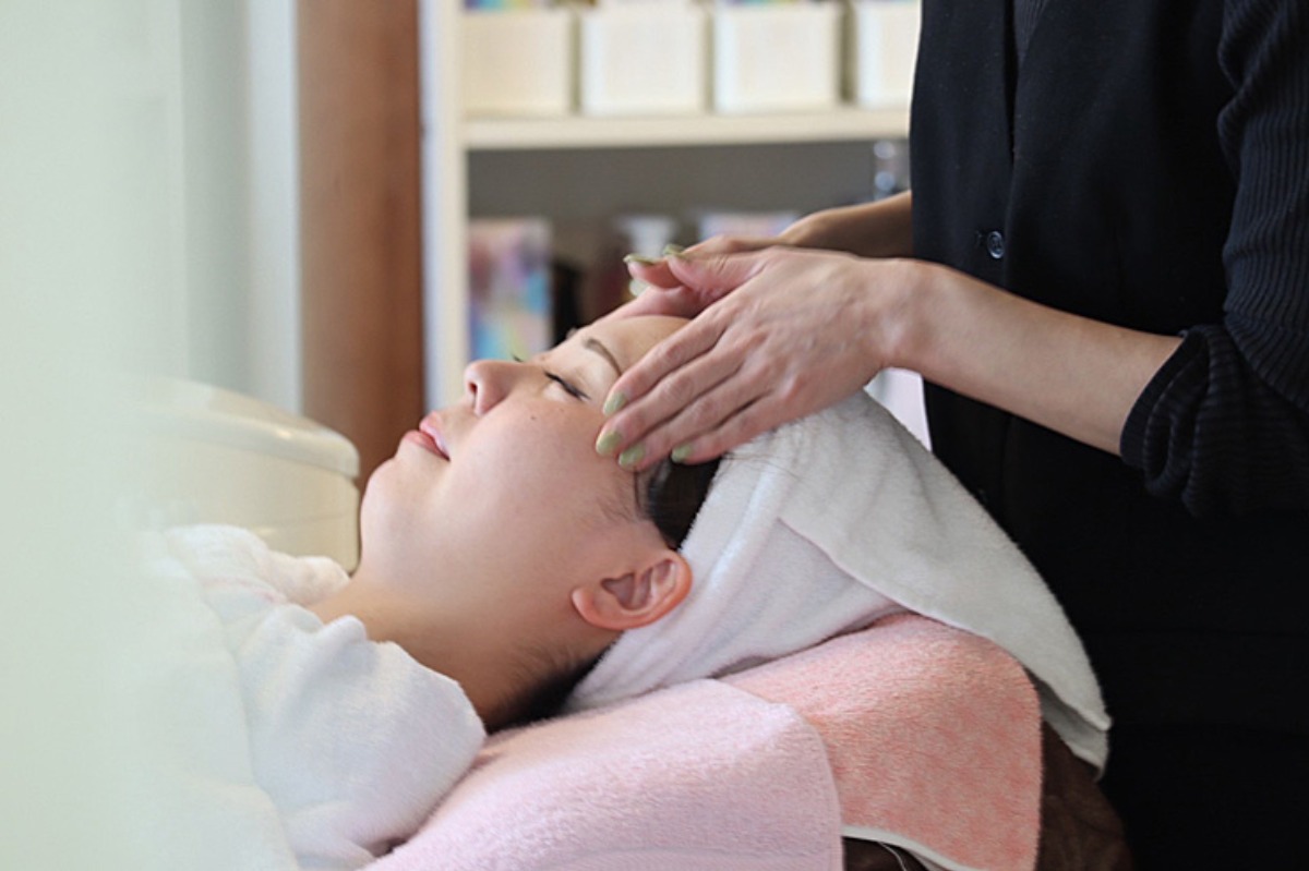 施術が始まると、やわらかな手のぬくもりが、ゆっくりと肌に伝わっていきます。