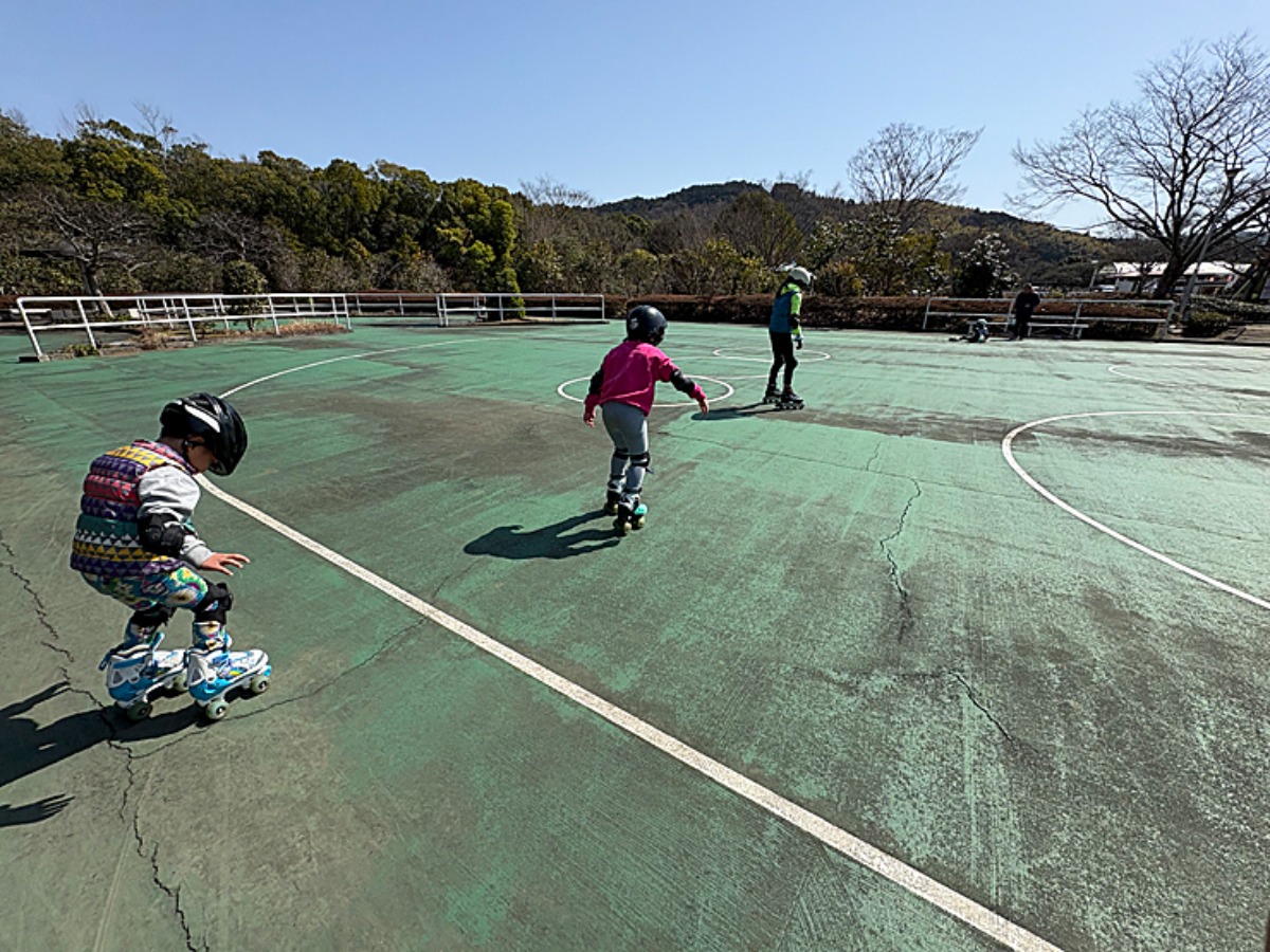 南楽園のファミリーパークには、芝エリアの反対側にローラースケート、ローラーブレードが出来るスポットがあります。子ども達はもちろん初めて滑ります。アイススケートもしたことが無いのですが、さて上手くすべる事が出来るのでしょうか。ローラースケートエリアの横には、ゴーカートやトランポリン、大きな遊具もあります。書く事が満載すぎて収めきれるのかわかりません。笑