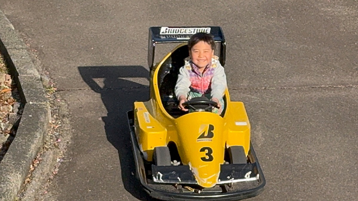 お姉ちゃん達が滑ってる間、ゴーカートに乗って大喜び。