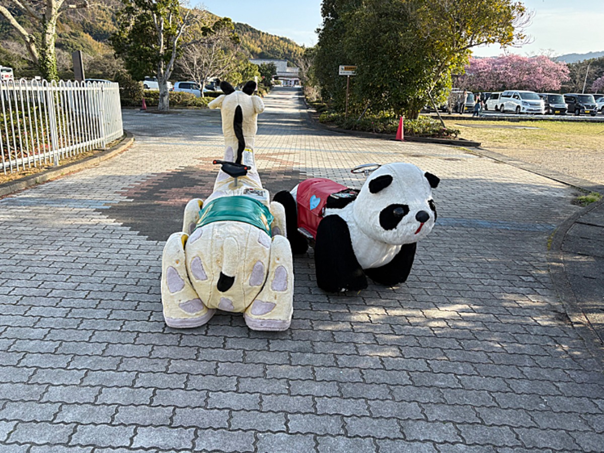 懐かしのパンダと麒麟の乗り物まであります。この動物の乗り物、昔から子ども達にとても人気ですよね。またねーと言ってる感じがたまりません。