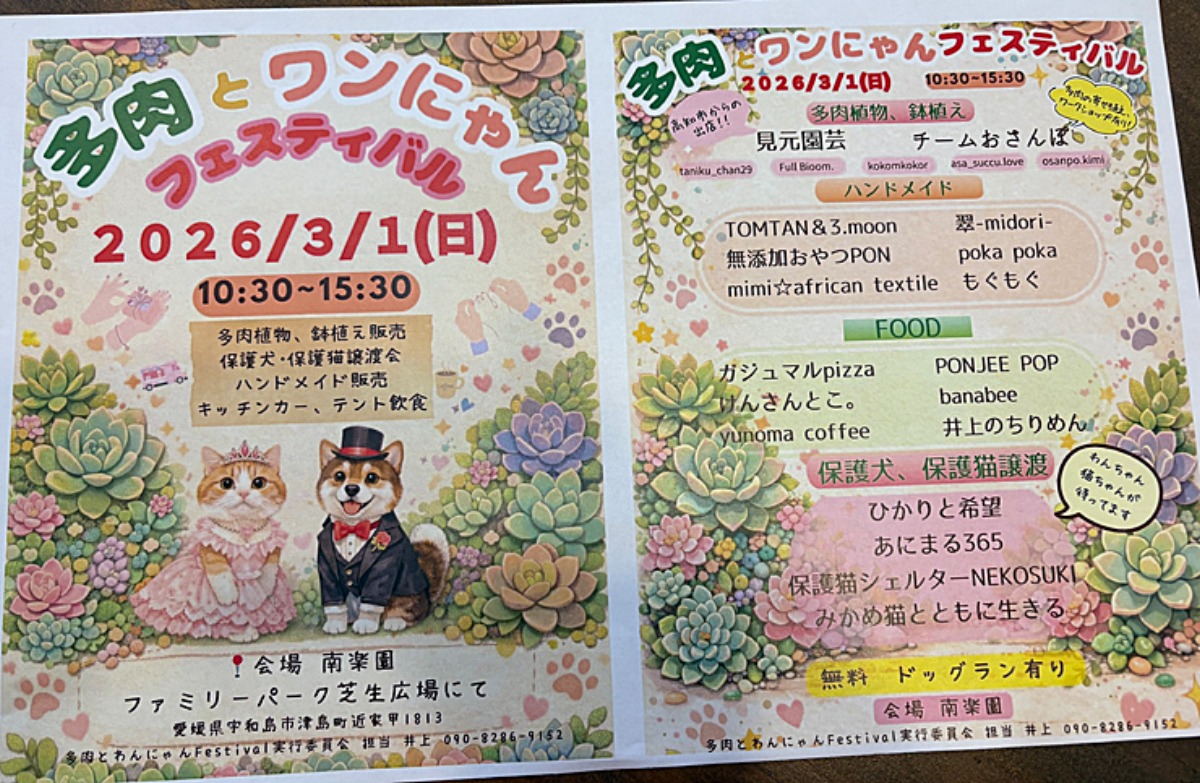 イベント開催の2日前ぐらいに、知り合いの方にこんなイベントするから良かったら来てねーと言われたので、どんなのーと見てみたら、多肉とワンにゃんフェスティバル⁈⁈