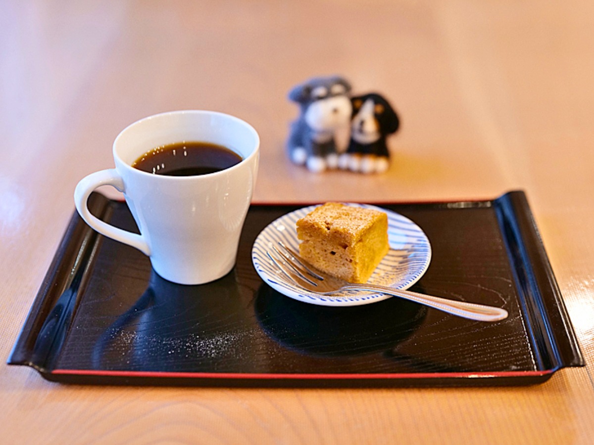 この日は「お米のきな粉ケーキ」をいただきました。やさしい甘さと香ばしさが広がり、地元焙煎のコーヒーとも相性抜群!