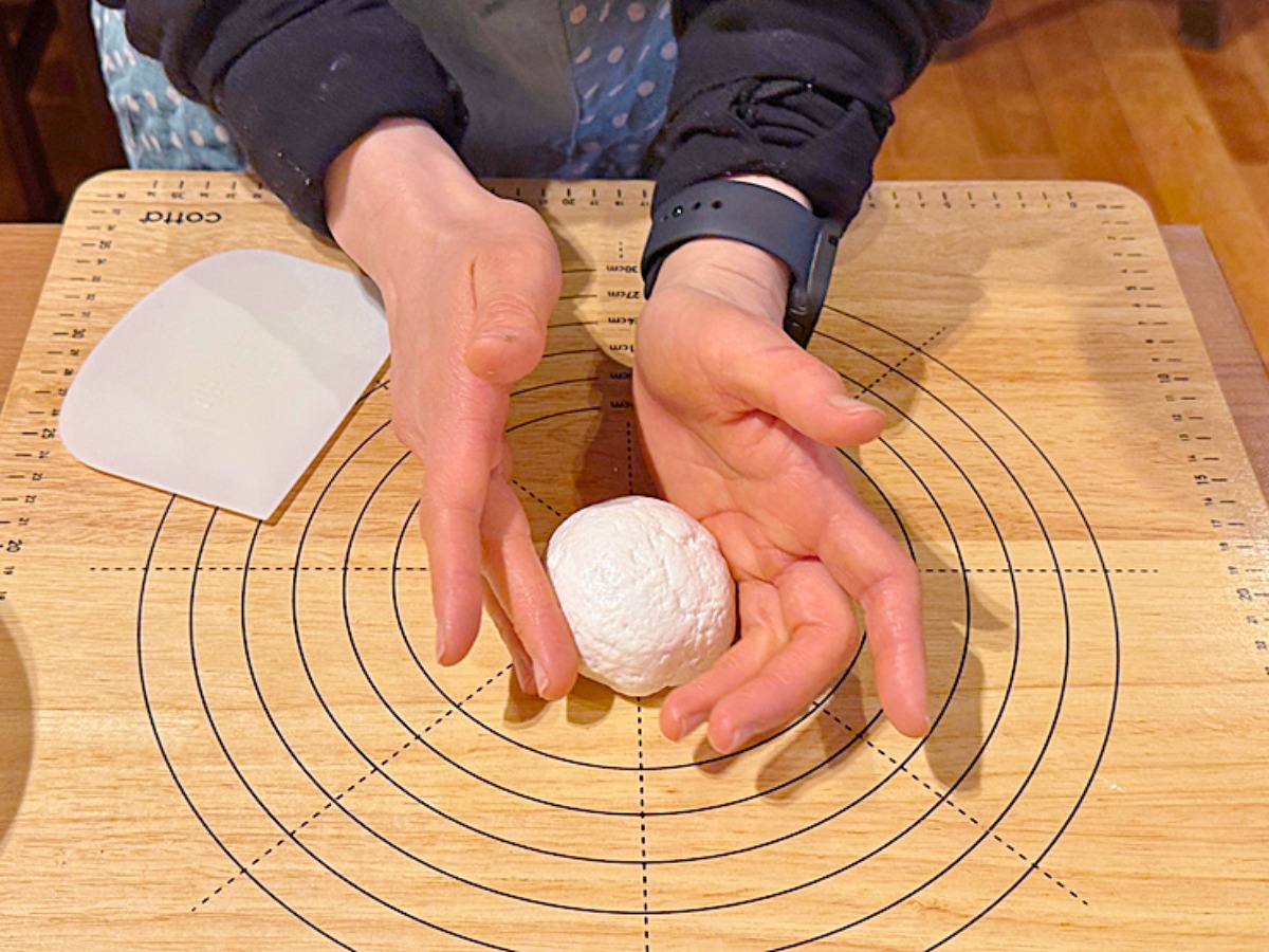 生地を混ぜた後は、約3分ほど手で捏ねていきます。