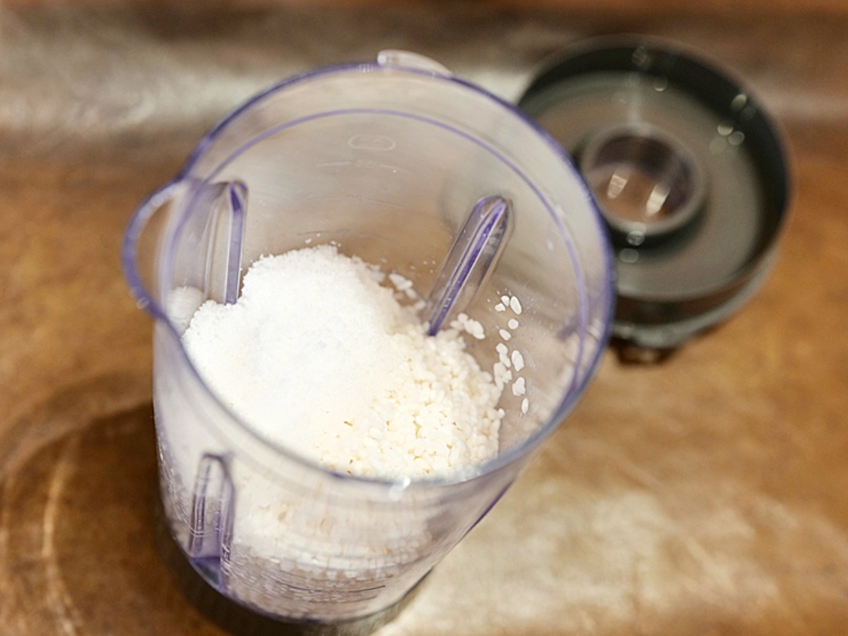 水をしっかりと吸水させた生のお米は、ミキサーで粉砕します