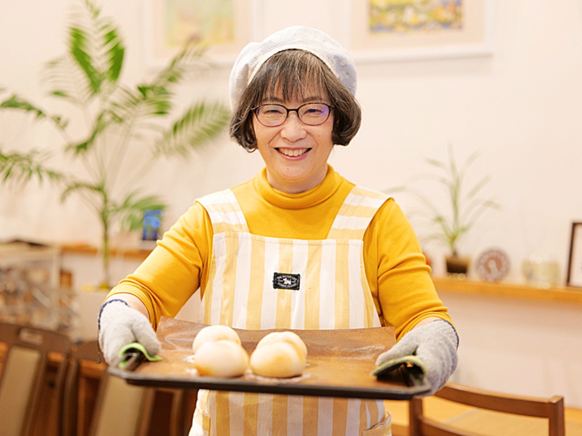 オーナーの高山数恵さんは、農薬や化学肥料を使わずに育てた自家製米を使用し、パンを焼いています。