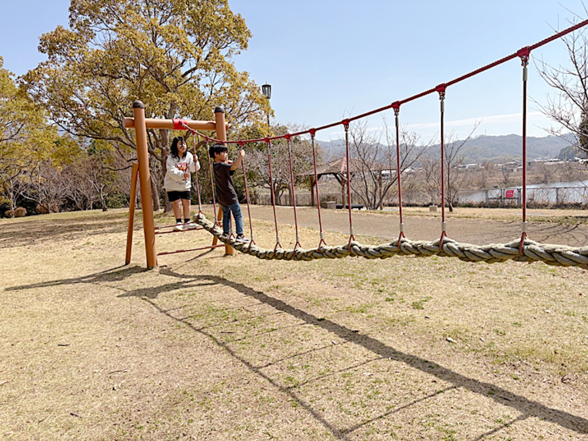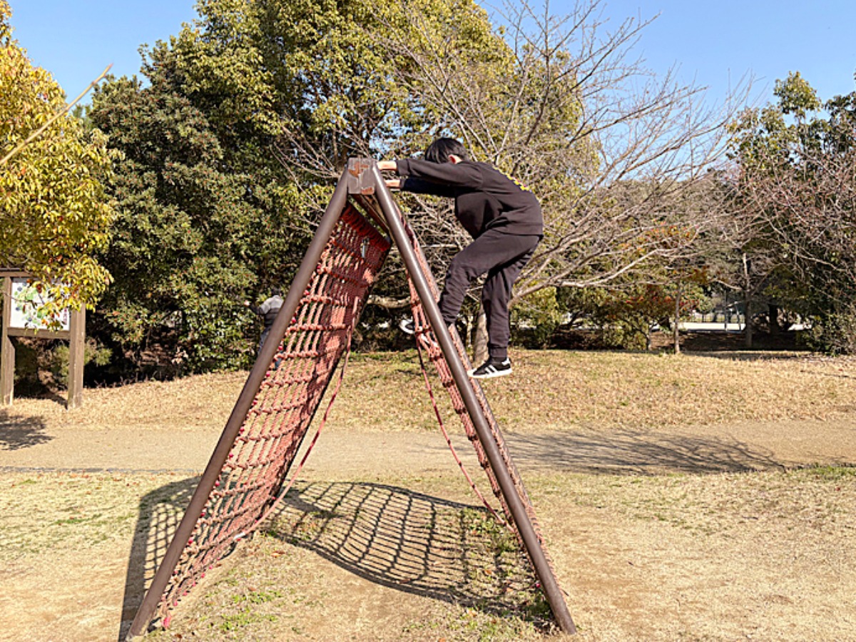 見た目からワクワクするようなつくりで、ゆるやかなカーブの橋を渡ったり、傾斜のあるクライミングに挑戦したりと、全身を使って楽しめるのが特徴です。