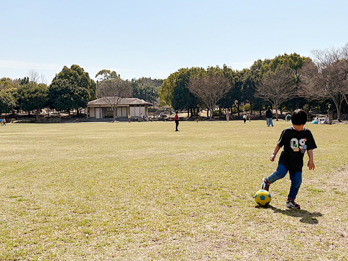 芝生広場では、ボール遊びをしたり、思いっきり走り回ったりと自由度の高い遊びができるのも魅力。遊具とはまた違った時間を過ごせます。