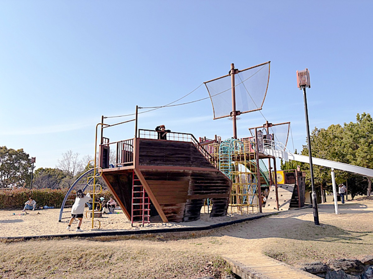 迫力満点の大型遊具。近くには小さいお子様用の遊具もありました。