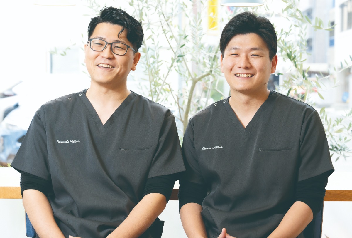 院長は愛媛大学医学部卒業、弟の山田恵爾先生は東北大学医学部卒業。現在は兄弟ならではのチームワークで診療を行っている