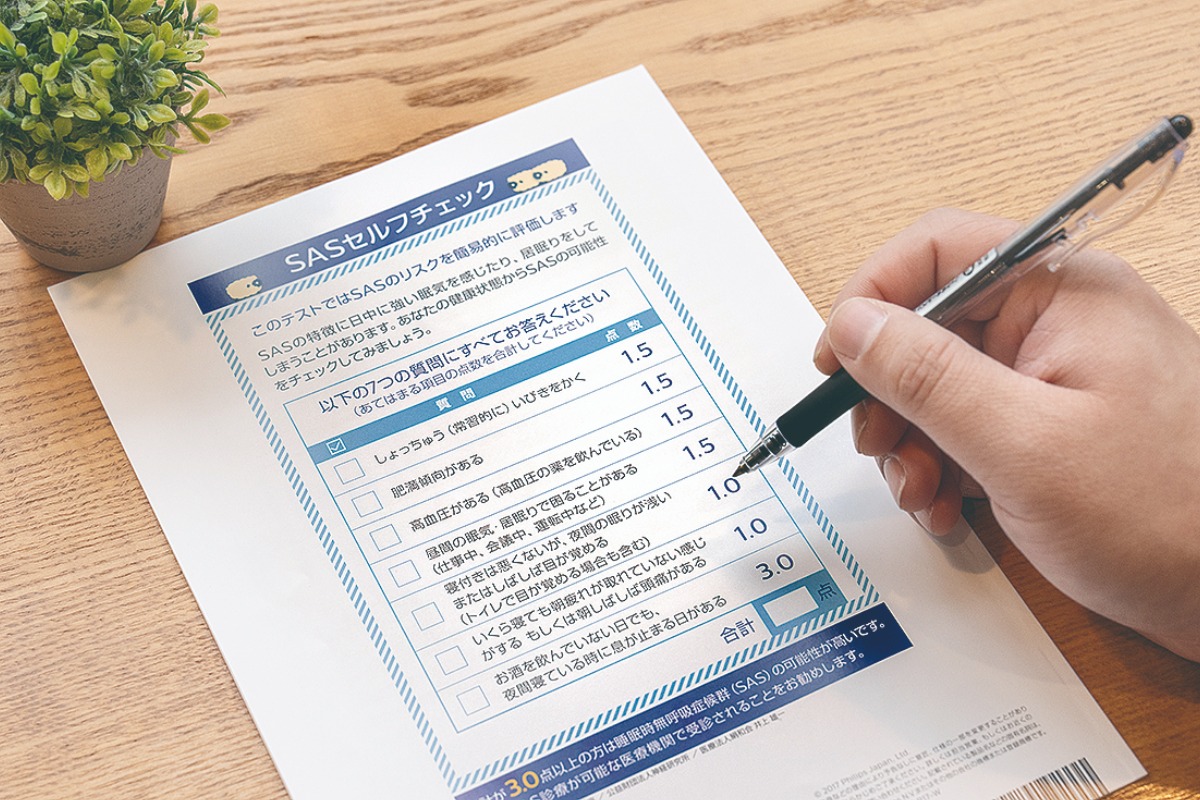 新生活でストレスを抱えやすい春は、うつ病や心疾患のリスク要因となるSASの発見に向け、簡単に行えるセルフチェック表の活用を呼びかけている。項目に答えて3点以上の場合は受診の目安となり、自身の睡眠状態を客観的に把握できるのだ。