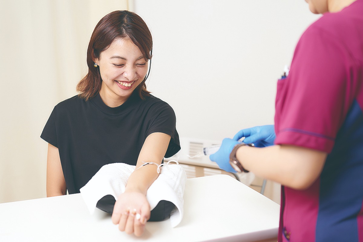 同院では、働く世代が通いやすい診療体制を構築。事前予約が不要な自費診療の白玉注射などは、仕事の合間や帰り道にも気軽に立ち寄りやすい。