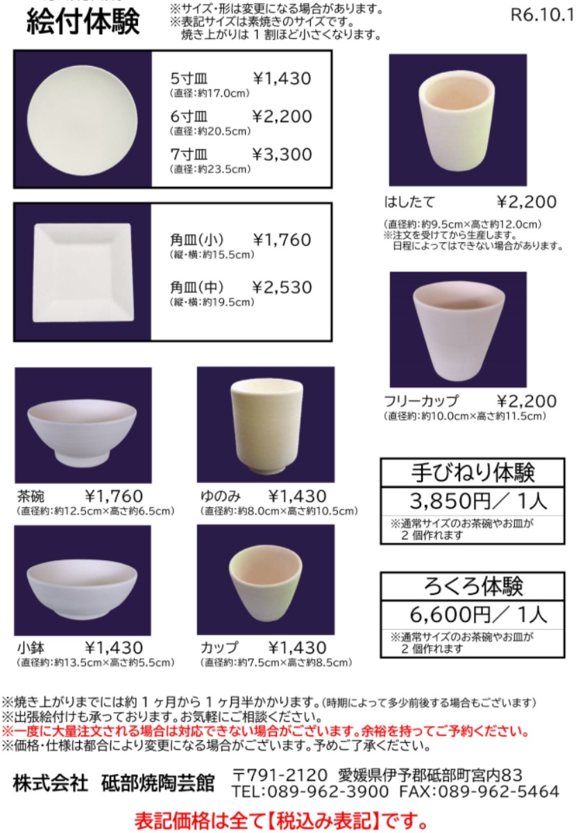 | 絵付け体験 | 1,430円(税込)~ |