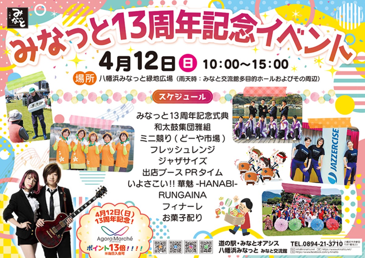 八幡浜市の玄関口である「道の駅 みなとオアシス 八幡浜みなっと」にて、13周年を記念したスペシャルイベントが開催決定!