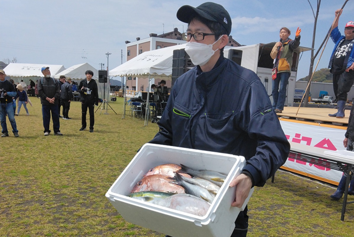 イベント会場では、八幡浜で水揚げされた新鮮な海産物や、地元の特産品が並ぶ「どーや市場」直売のミニ競りを開催!