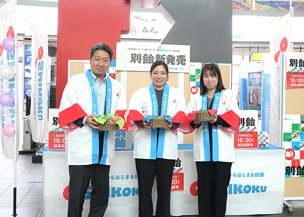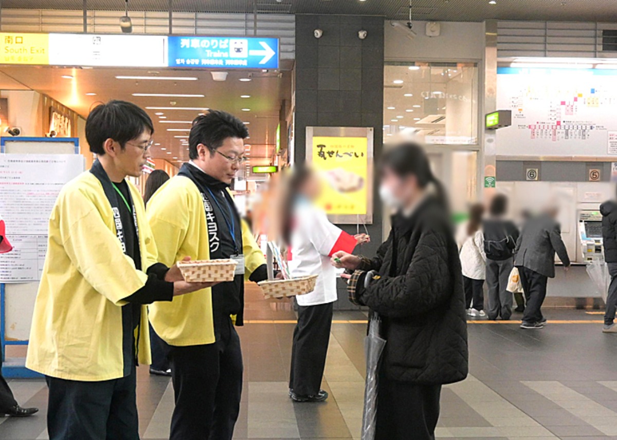 今回、別撰別子飴の発売を記念して、発売日の3月18日(水)に、JR四国高松駅内にて、無料配布イベントが行われました。