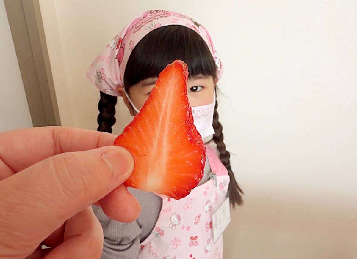 いちごを切ったり、生クリームを混ぜたり、自分でできることはとにかくやってみよう!の精神で、こどもたちの口からも、「じぶんでやる!」「できた!」と活気ある声があがっていたのが印象的でした。